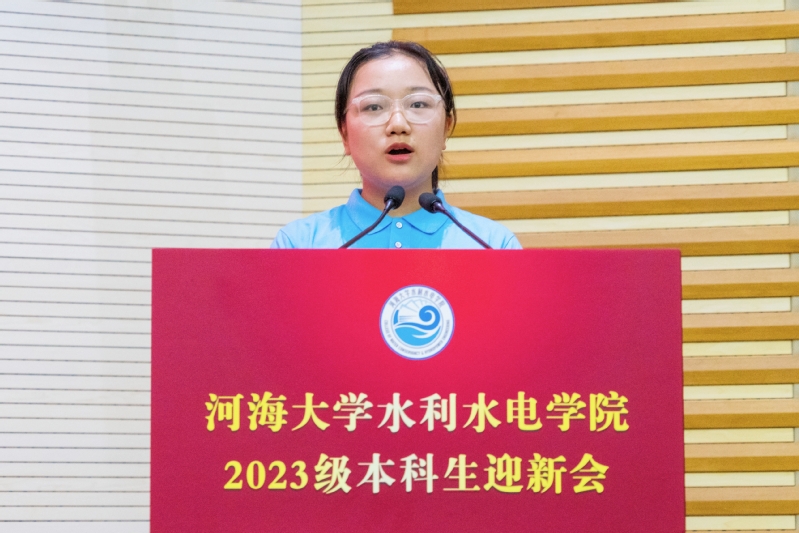 新生代表2023级智水专业吕珏稞同学表示河海学生为水而来,因水而聚,乘水而行,必将带着入学的欣喜锐意进取,砥砺前行,肩负起河海的骄傲与光荣,肩负起中华民族伟大复兴的责任与使命。