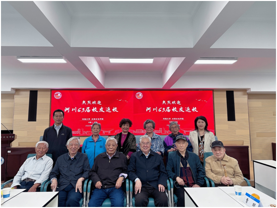 10月7日上午,av影片 (原华东水利学院)河川63届校友返校,张秉铎、夏镜如、李承瑛、龚心海、汪潮松、董长余、曹明、丁洁、王安乔、钱春荣、孙小鹏等校友欢聚母校。