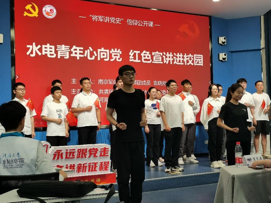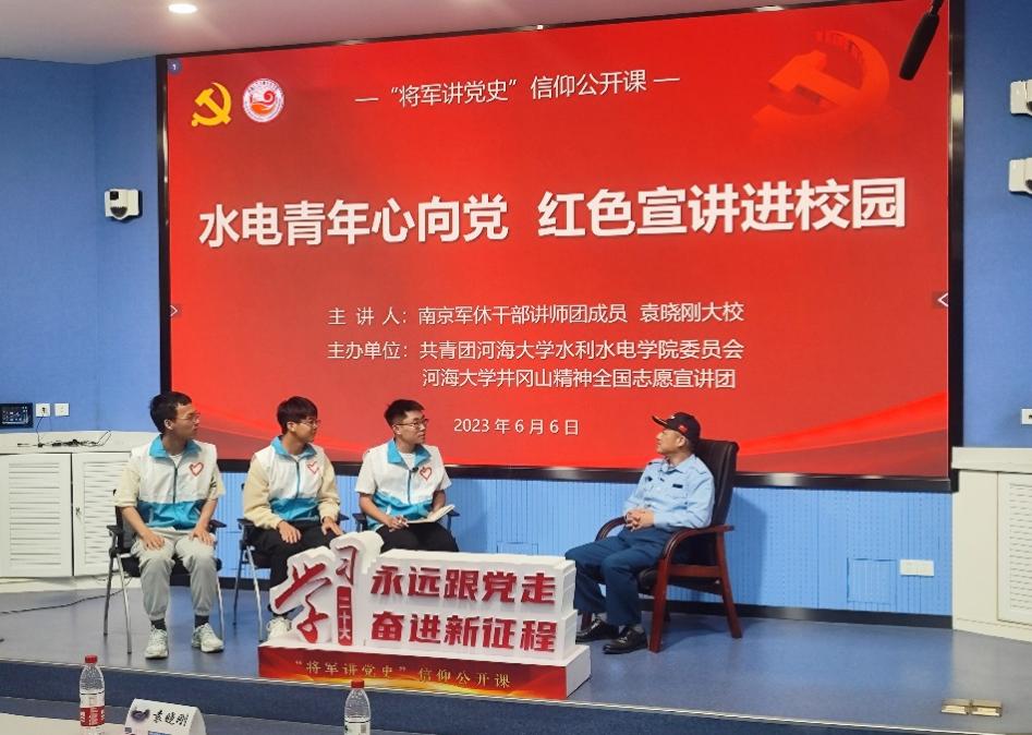 为深入开展学习贯彻习近平新时代中国特色社会主义思想主题教育,引导学生深刻感受中国共产党领导下取得的伟大成就,用党的创新理论引领青年工作。6月6日,av影片 开展“水电青年心向党,红色宣讲进校园”信仰公开课。邀请南京军休干部讲师团成员袁晓刚大校进行主讲,院党委副书记戴媛媛、宁海路街道二级调研员朱岩、院团委书记笪步源、学院各党支部书记、团学骨干代表参加活动。