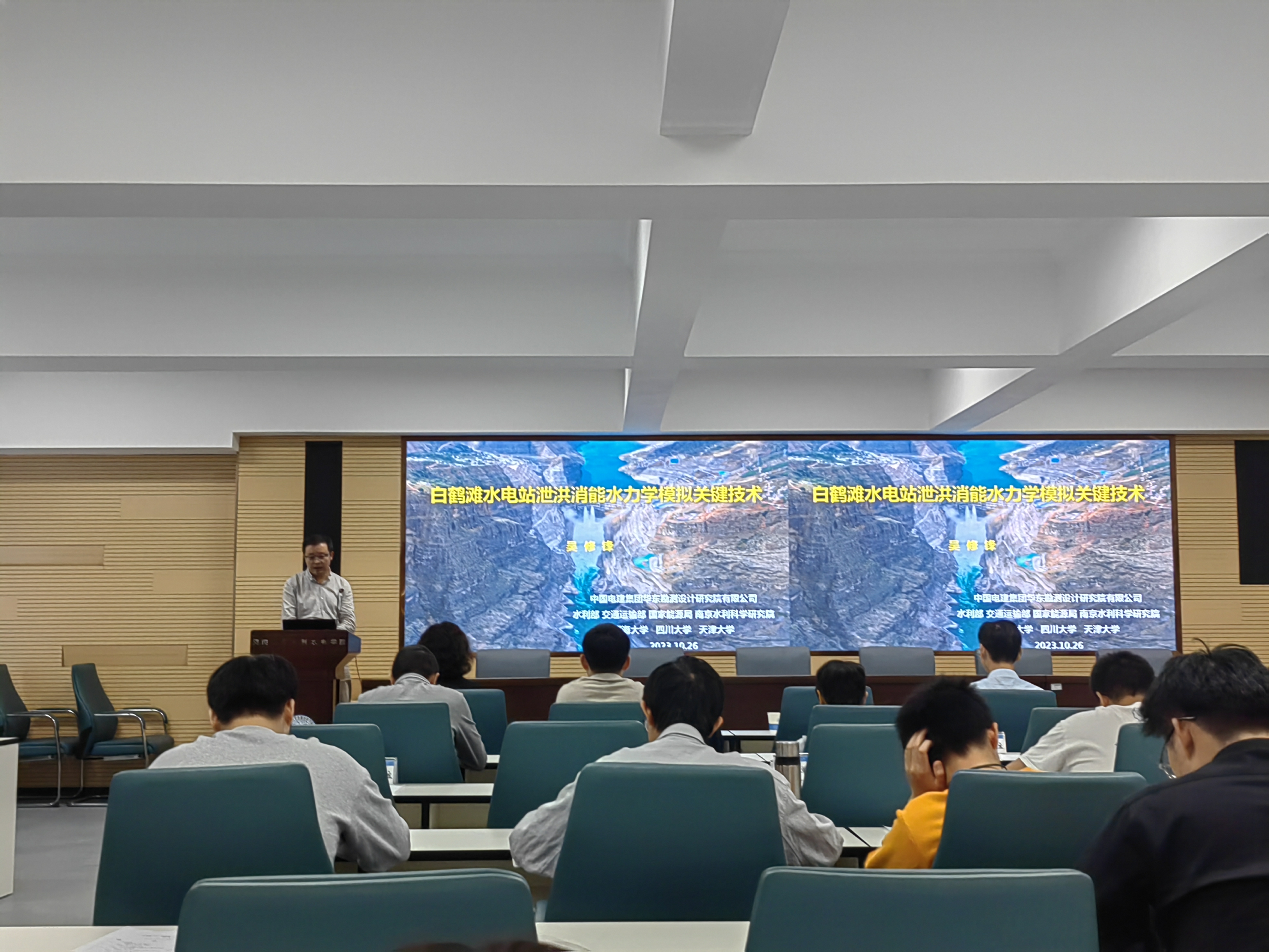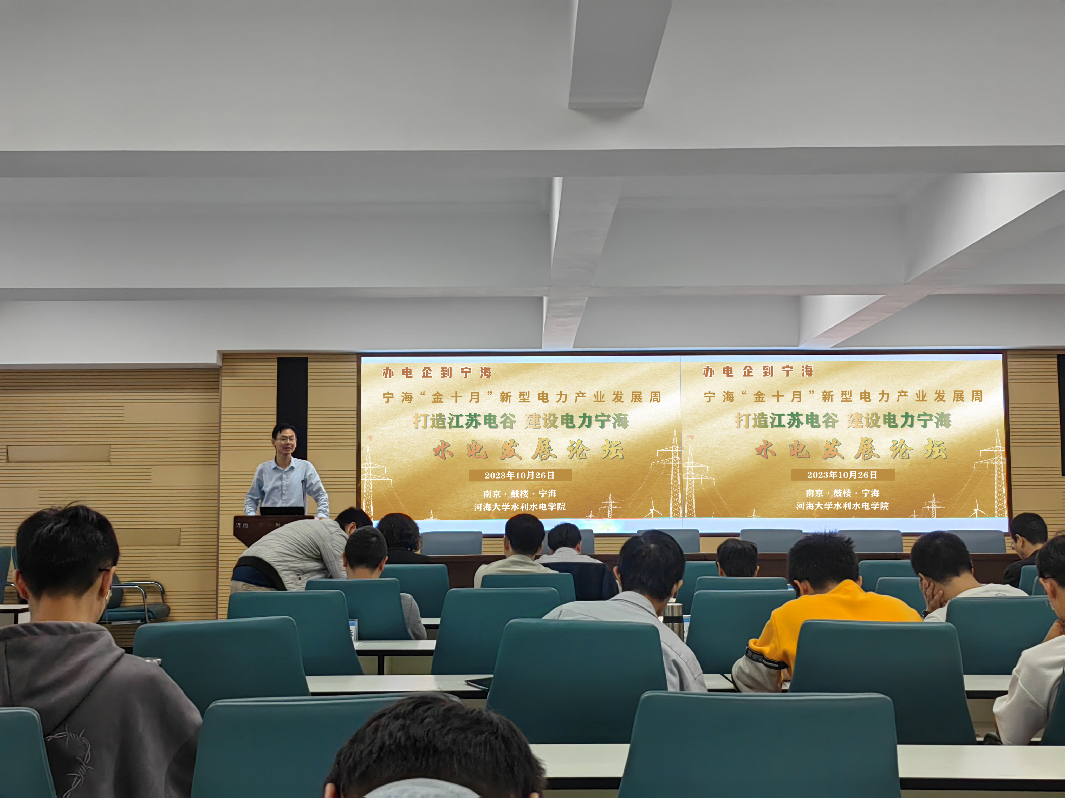 10月26日,av影片 携手宁海街道举办宁海金十月新型电力产业发展周-水电发展论坛。院党委书记娄健、工程教育与社会合作办公室主任甘磊、副主任陈胜、av影片 智慧水利与智能减灾研究所支部书记高玉琴、宁海街道主任吴宏、中国水利水电第四工程局有限公司、华东勘测设计研究院有限公司、中国长江三峡集团有限公司、av影片 设计研究院有限公司、三峡电能有限公司等单位代表出席。论坛由av影片 高玉琴教授主持。av影片 高年级本科生及部分研究生参与论坛。