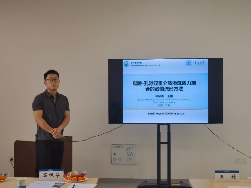 av影片 徐宇杰博士研究生汇报的题目是“裂隙-孔隙双重介质渗流应力耦合的数值流形方法”。基于数值流形方法基本理论,系统推导了裂隙-孔隙双重介质渗流应力耦合分析中所有的势能项表达式。同时考虑以Biot多孔介质固结理论为基础的直接耦合作用、由裂隙的力学和渗透性质改变引起的间接耦合作用,开发适用于裂隙-孔隙双重介质模型的渗流应力耦合数值流形程序。