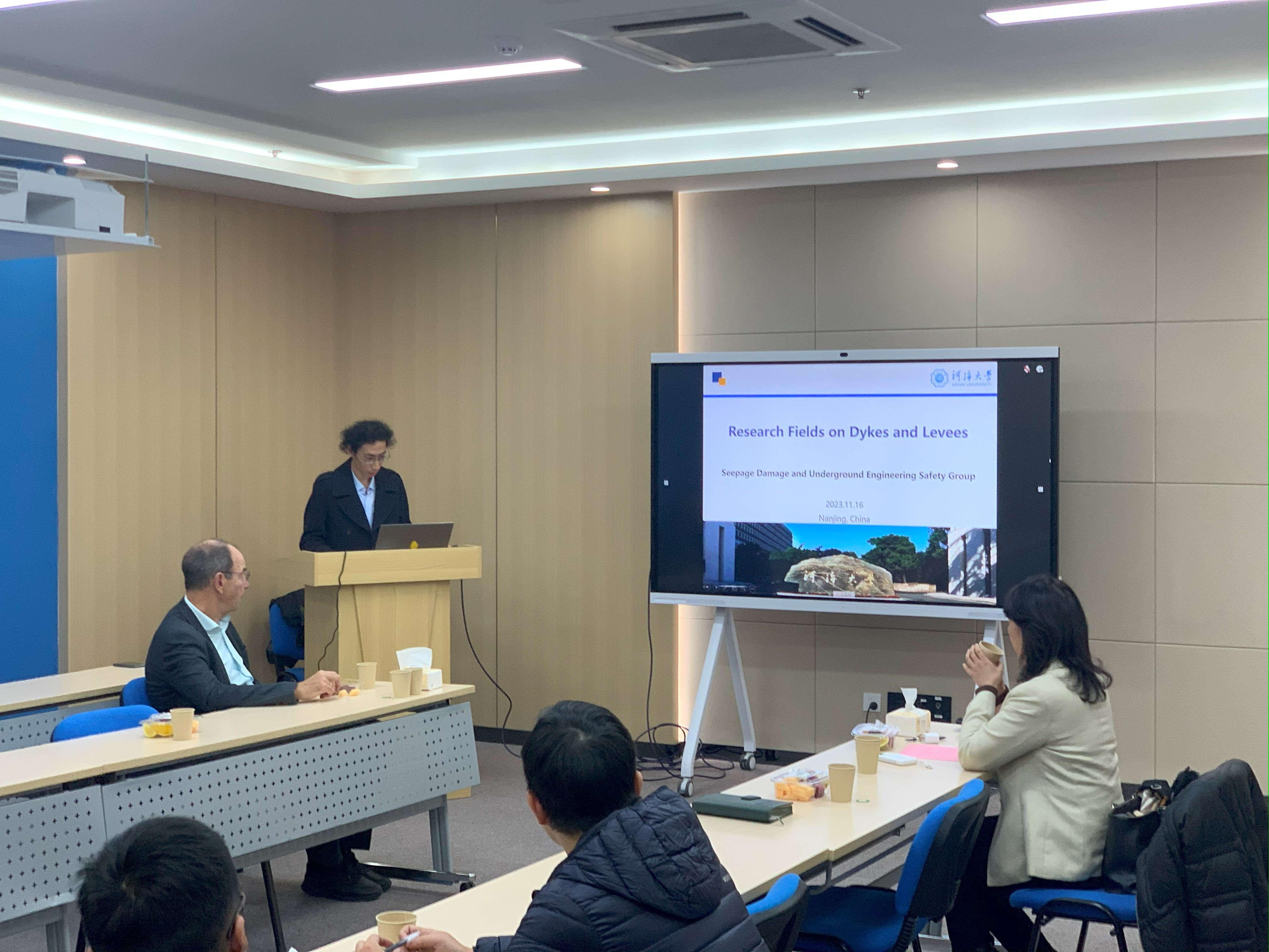 11月17日,Adam Bezuijen教授一行参观了渗流破坏与控制实验室,巩佳琨副教授介绍了自主研发实验平台和在渗控注浆新材料及新技术研发方面取得的进展,并就相关问题进行了深入探讨。