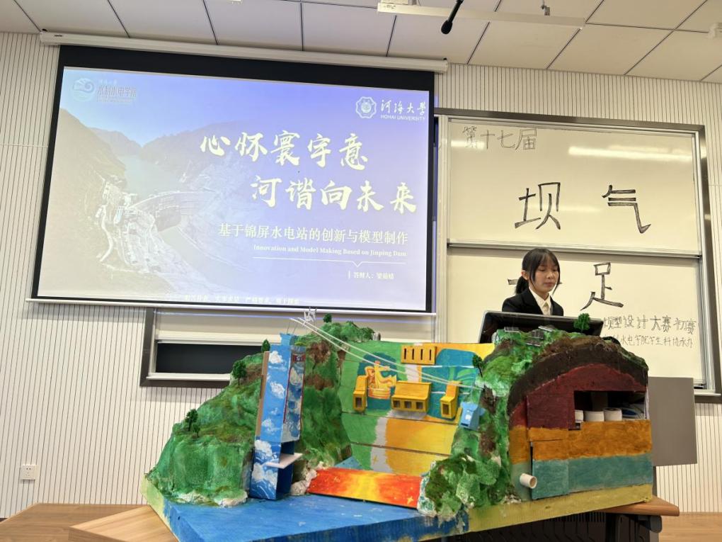 参赛团队依次上台展示精心制作的大坝实体模型,结合PPT、三维建模、动画片段,选手们生动形象地向评委和观众们展示出了作品的设计思路、创新亮点、主题寓意等信息。现场展示出制作精巧的重力坝、实用简约的支墩坝等,详细展示了作用各异的节制闸、冲沙闸、升船机、鱼道等,并在坝型外观和美工上融入中华传统元素,带来专业知识与艺术美学的双重享受,体现了水之子传承接续前辈力量建设国家水利事业的决心。