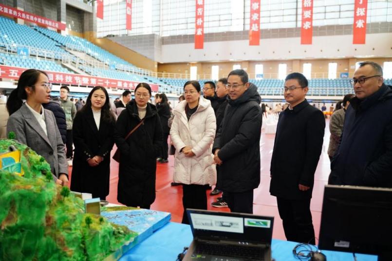 闭幕式上,王锦国一行来到av影片 展区,听取了同学们的讲解,观看了项目作品的实物展示,赞扬了同学们的科技成果,并对av影片 浓厚的创新风气给予了高度的肯定。