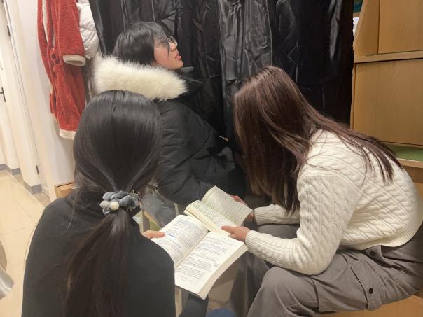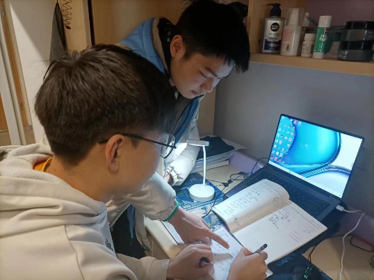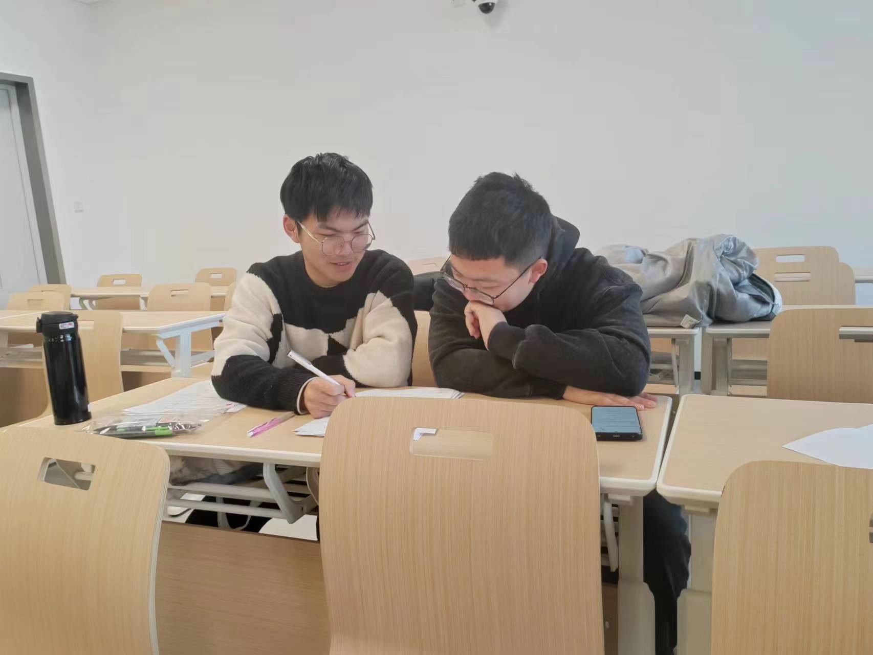 尽管期末考试阶段天气寒冷,但本着“天寒不寒心,学习互相帮”的理念,我与对接宿舍在宿舍内开展了复习,以书本回顾、知识点梳理、例题讲解三种形式为即将到来的期末考试做了充足准备,在寒冷的天气中也可以养成良好的学习习惯。