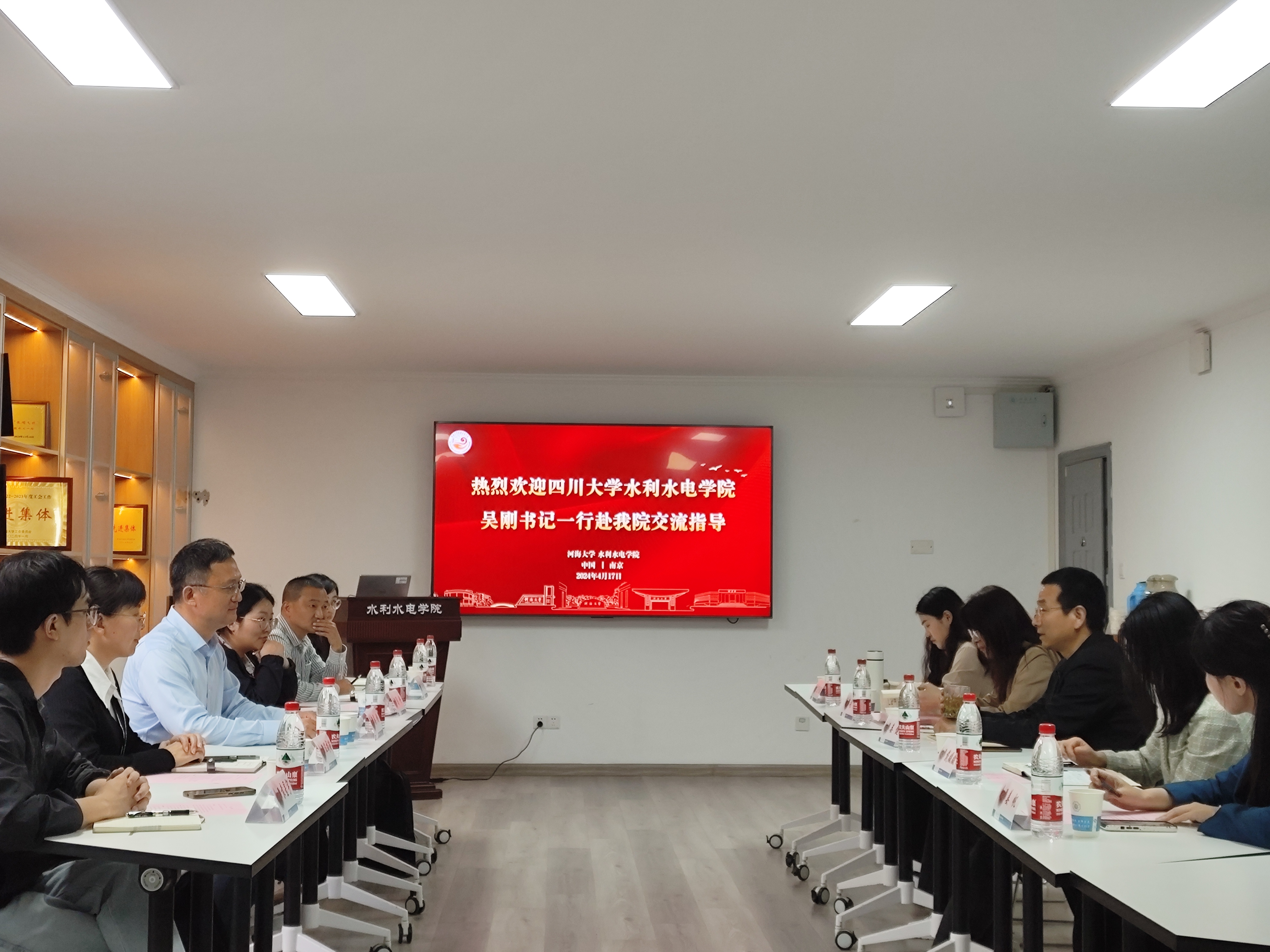 娄健对吴刚书记一行的到来表示诚挚欢迎。他从历史沿革、师资队伍、学科平台、机构设置、代表成果、学生工作、党建工作、杰出校友等各方面介绍了av影片 的发展历程,并分享了全国党建工作标杆院系建设经验。他表示,希望未来双方能够进一步加强交流、相互借鉴,共同推进党建工作、人才培养、学风建设、学科竞赛等方面的成果交流和工作展示,为新时代水利类人才培养增质增效。