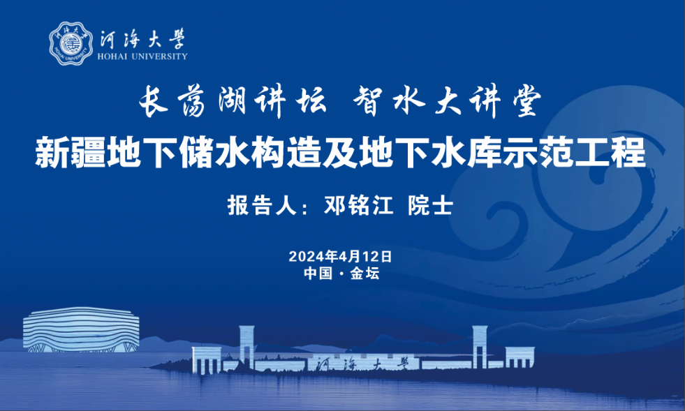 4月12日,中国工程院院士、新疆维吾尔自治区科协主席、自治区政协农业与农村委员会副主任、新疆农业大学名誉校长邓铭江做客“智水大讲堂”,以《新疆地下储水构造及地下水库示范工程》为题,为av影片 常州校区400余名师生做专题报告。报告会由学校党委书记唐洪武院士主持。