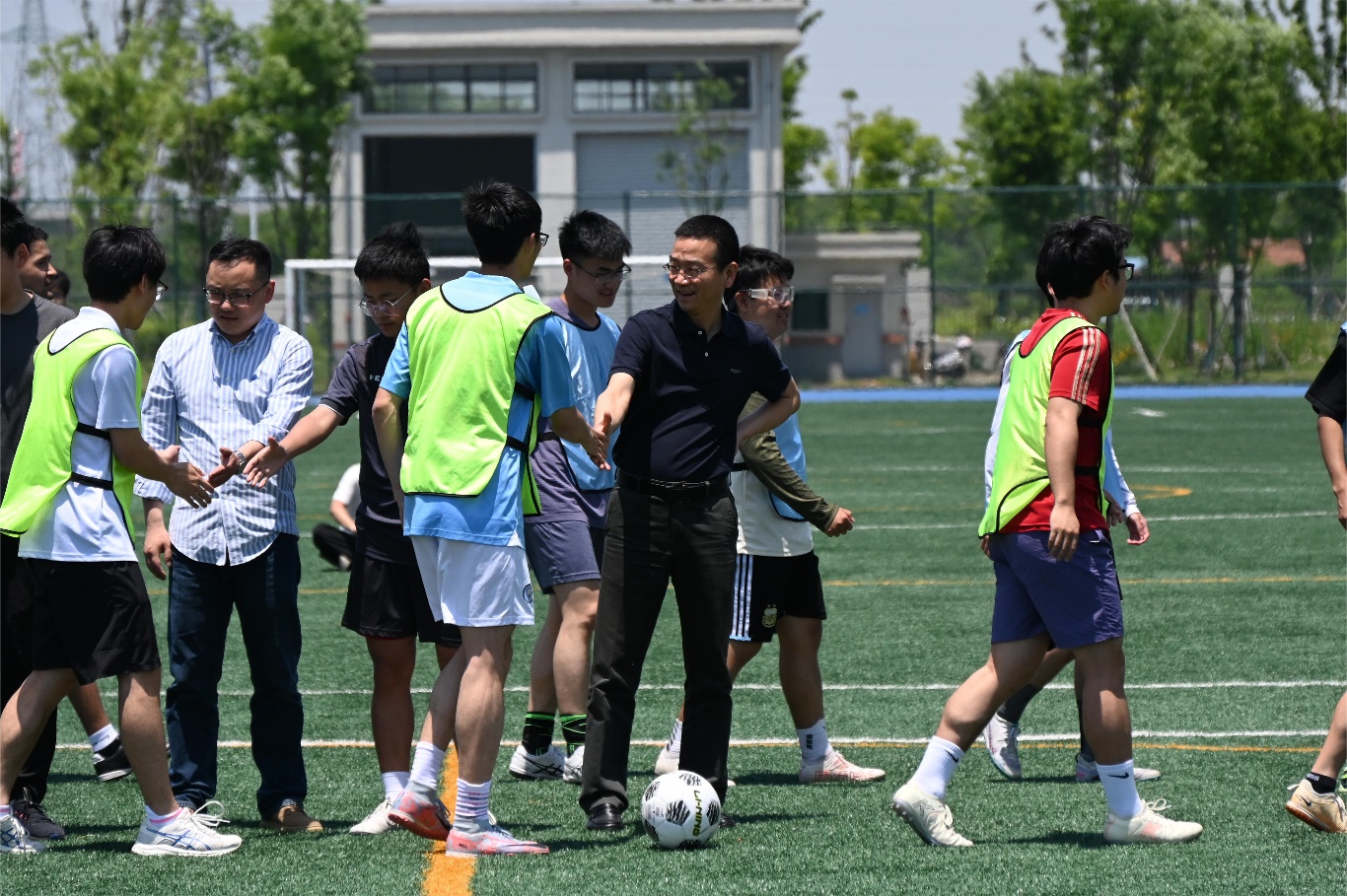决赛于5月17日举行,由水工队对阵研究生队。av影片 党委书记娄健、副院长俞晓东、党委副书记戴媛媛、22级本科生辅导员姜帆受邀观赛。随着主裁判一声哨响,娄健书记在热烈的掌声中进行了开球仪式,为这场友谊赛注入了庄重与期待。