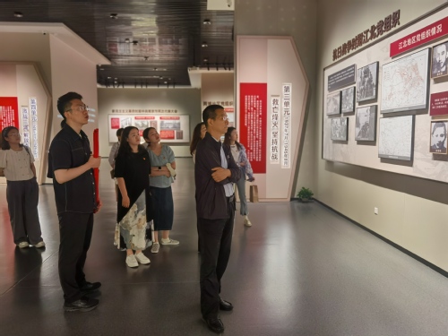 两办党员依次参观学习了“两浦星火 革命洪流”“疾风劲草 北岸屹立”“救亡烽火 坚持抗战”“激战三浦 解放南京”四大单元主题厅。展览通过图片、实物展陈和场景重现,生动再现江北地区革命先烈的英雄形象和荡气回肠的革命故事,系统介绍了江北地区在中国共产党历史、中国革命史和中国工人运动史中的贡献,带领党员同志们共同追忆南京早期党组织光辉历史,重温老一辈波澜壮阔的斗争岁月。