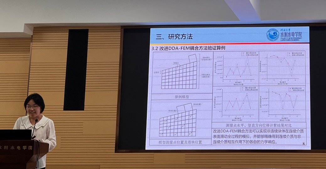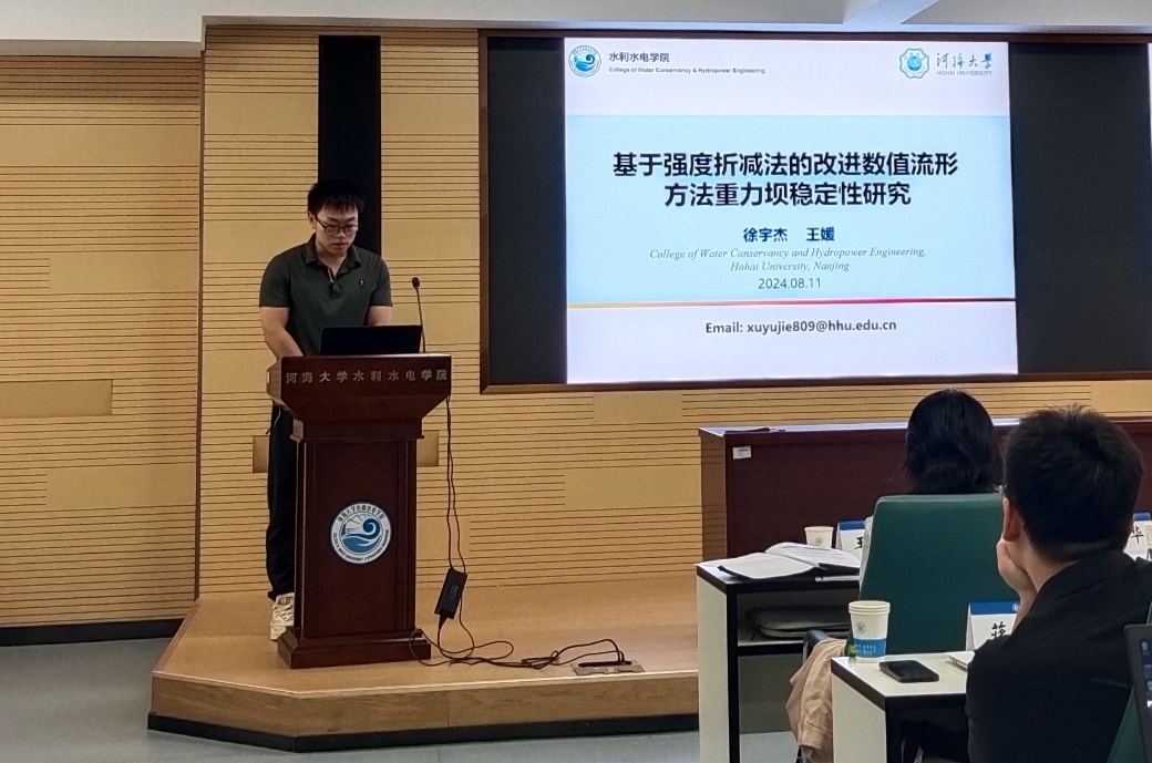 av影片 徐宇杰博士生汇报的题目是“基于强度折减法的改进数值流形法的重力坝稳定性分析”。首先简要介绍了重力坝稳定性分析中遇到的各种难题。从流体不同作用形式的方面分别解释了对应不同的势能项和其作用形式的不同点。从一个基础的算例到重力坝工程的算例计算,验证了数值流形方法计算的正确性和精确度,揭示了流体的不同作用形式对稳定性分析的影响。