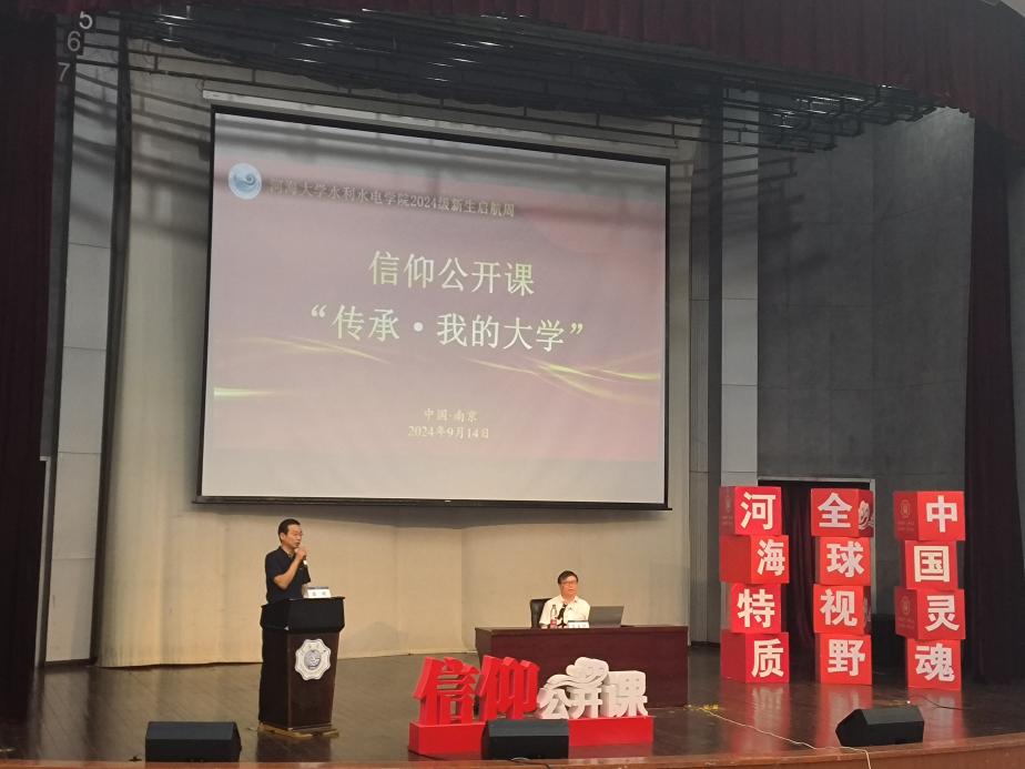 9月14日,av影片 举办2024级“传承·我的大学”信仰公开课活动,活动由学院党委书记娄健主持,院党委副书记戴媛媛、2024级辅导员笪步源及全体2024级新生参加,由av影片 1987届水利水电工程建筑专业杰出校友、水利部大坝安全管理中心总工程师、南京水利科学研究院大坝安全与管理研究所所长盛金保教授主讲。