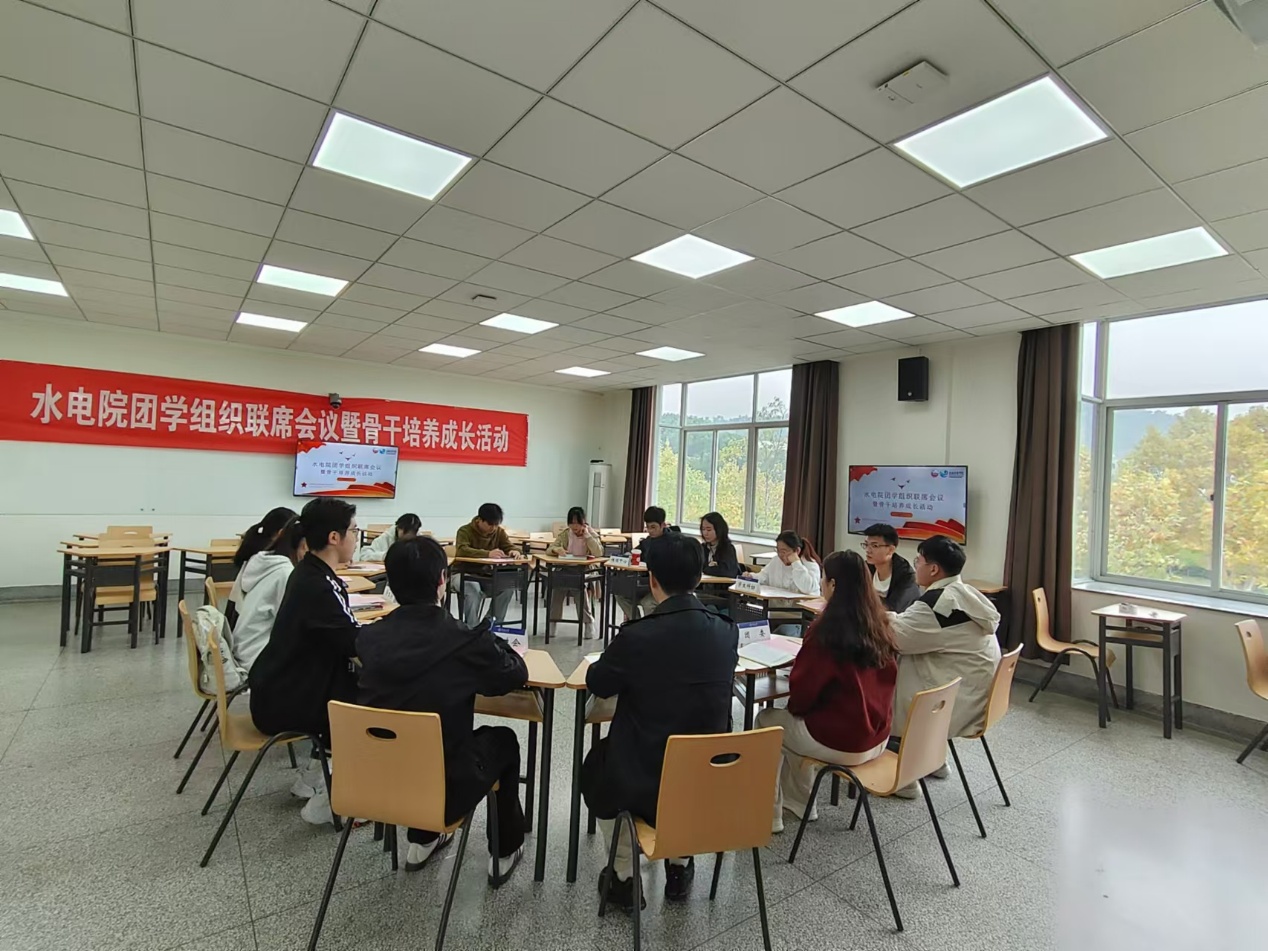 为进一步提高av影片 团学组织凝聚力,加强各组织主席团的协作交流,提升主席团成员的工作能力与交流沟通能力,2024年11月13日,av影片 举办“水电优才-先锋骨干领潮计划”团学组织联席会议暨骨干培养成长活动。院团委、研究生会、学生会、青年志愿者协会、学生科协、传媒中心全体主席团成员参加,会议由院团委书记笪步源主持。