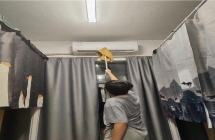 11月12日下午2点,在权益部成员的组织下,志愿者们准时集合,前往水电院各个学生宿舍。宿舍里,志愿者们首先对空调进行了清洁。他们戴上手套,拿起专业的清洁工具和清洁剂,小心翼翼地拆开空调的面板,用软刷子和吸尘器清除内部的灰尘和杂物。同时,他们也用湿抹布轻轻擦拭空调的外部表面,确保每一处都干净整洁。