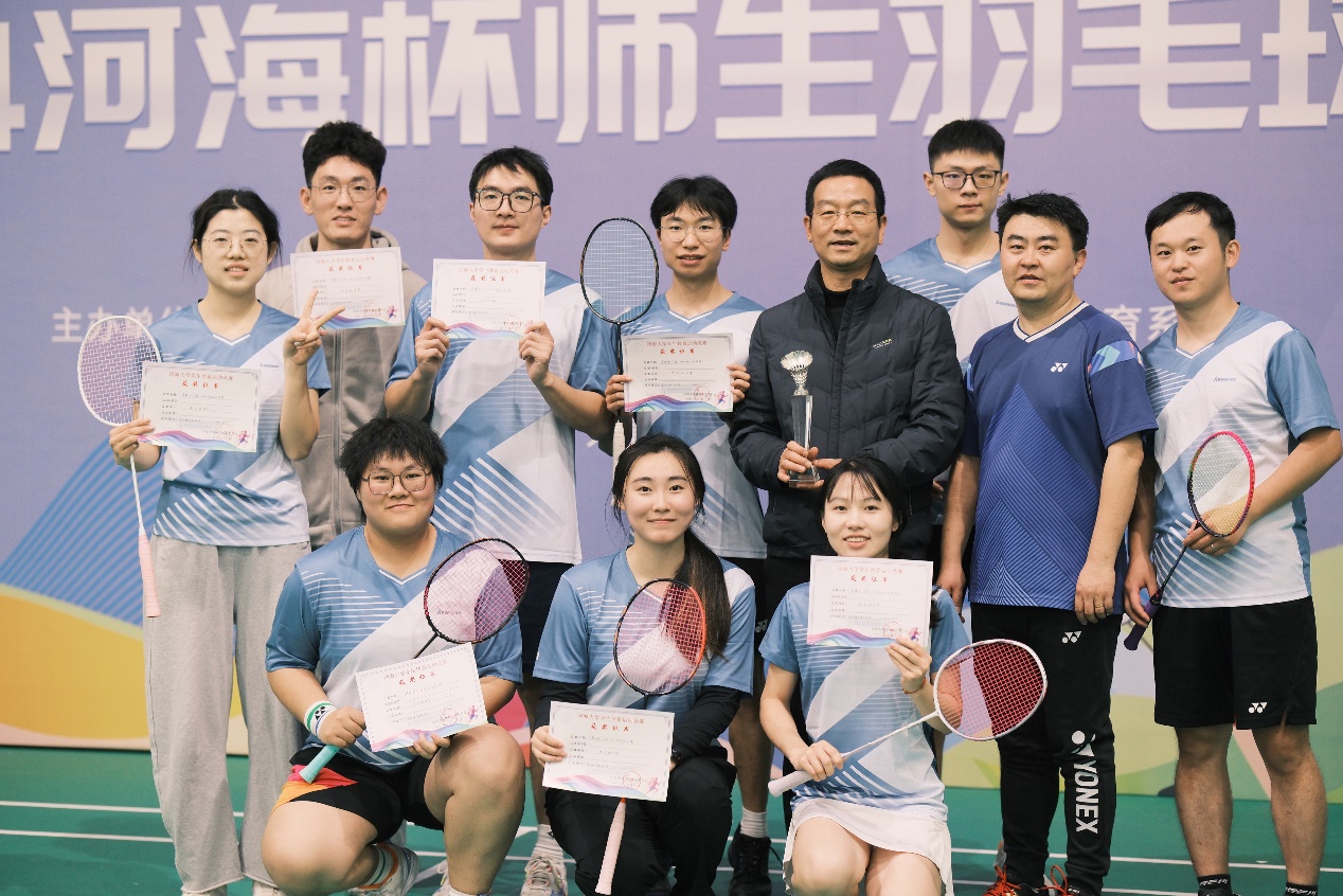 2024年12月7日,“河海杯”师生羽毛球比赛在常州新校区落下帷幕。本次赛事中,av影片 党委书记娄健担任领队,刘晓青、罗玉龙、林青炜三位教师参赛,学生队员为汤瑞、胡博扬、洪豆、刘顺然、周冰逸、陈静茹、向海岚,涵盖av影片 本硕博各级学生。本次比赛共有21支来自不同学院的代表队参加,参赛团队历经混双、男双、女双、男单、女单五个赛程,采取团体赛五局三胜制。我院羽毛球队表现出色,经过多轮激烈对决,一路披荆斩棘进入决赛,斩获亚军!