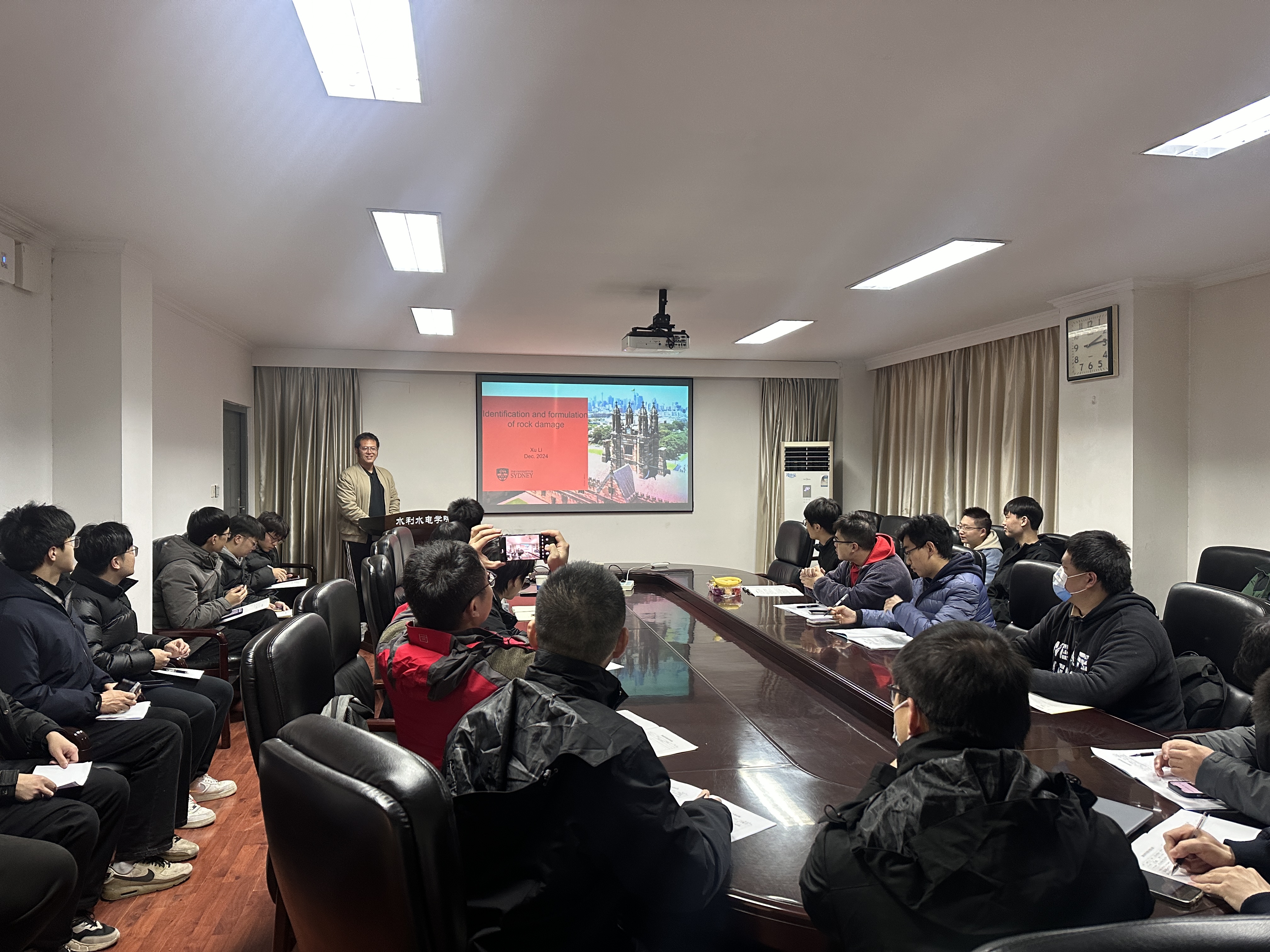 为活跃学术氛围,加强青年教师以及学生之间的学术交流,av影片 于12月12日举办2024年第三期“青年教师学术沙龙”。本次学术交流活动由悉尼大学土木工程学院博士后李旭研究员作关于“岩石内部损伤测量及基于损伤变量的本构建模”的报告,多位青年教师及学生共同就相关科学问题进行探讨交流。学术沙龙由av影片 智慧所蒋晟老师主持。