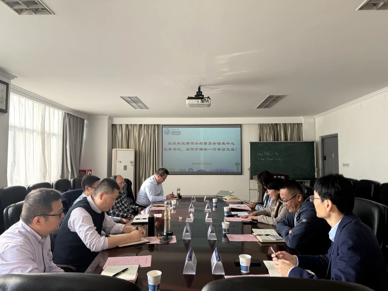 10月25日下午,水利部黄河水利委员会信息中心党委书记、主任于海泓一行来av影片 调研。院长王媛、副院长赵兰浩、院党委副书记戴媛媛、智慧水利与智能减灾研究所教师许栋和辅导员陈辰参加了座谈交流。