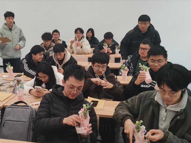 为了表达对女性的尊重和关爱,弘扬女性的自尊、自信、自立、自强精神,2025年3月7日,av影片 23级安全工程专业本科生在常州校区A106教室举办“巧手制花,深情献她”妇女节主题活动。