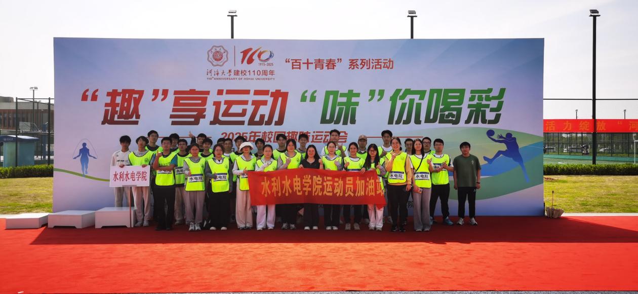 15:00,“毛毛虫”项目正开始。水电院的5名队员(3男2女)骑在充气毛毛虫上,双手紧握把手,随着裁判一声令下,队员们步伐一致,奋力向前冲刺。比赛中,队员们高喊口号,保持节奏,确保器械不触地。尽管对手实力强劲,但水电院凭借出色的配合顺利完成50米赛程,赢得了现场观众的阵阵欢呼。