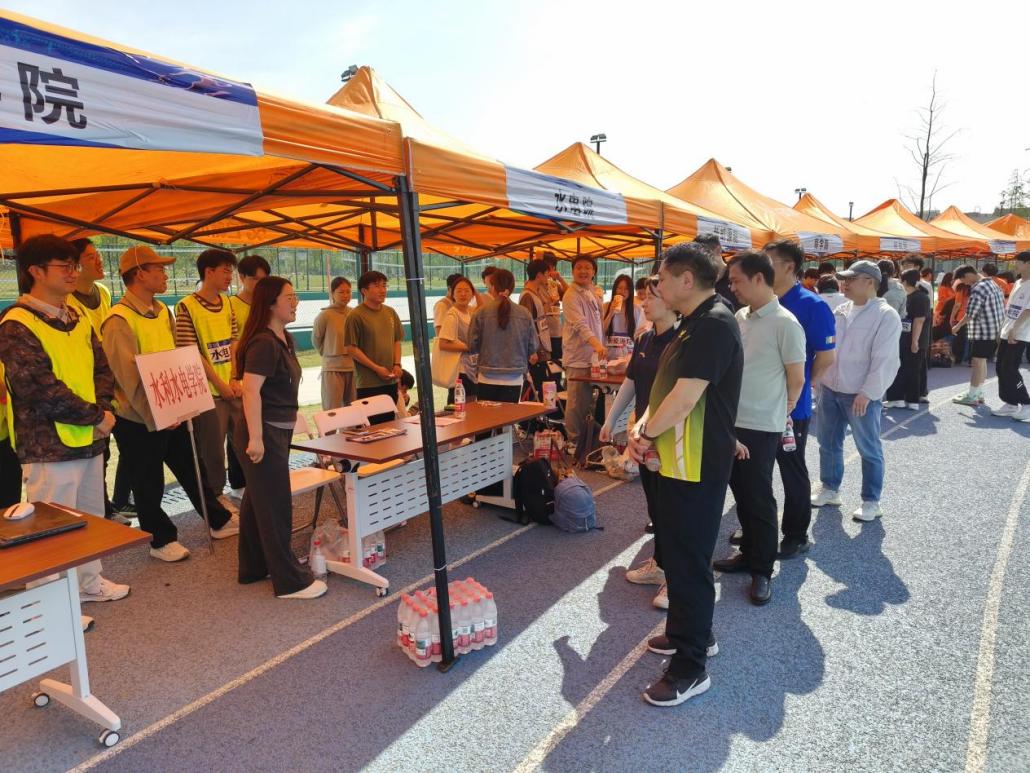 下午13:55,学院代表队陆续入场就位。校党委副书记、副校长陆国宾一行来到学院备赛区,亲切慰问参赛师生,交流各个项目参赛情况,勉励参赛队员团结协作,充分发扬体育赛事精神,并预祝取得好成绩。