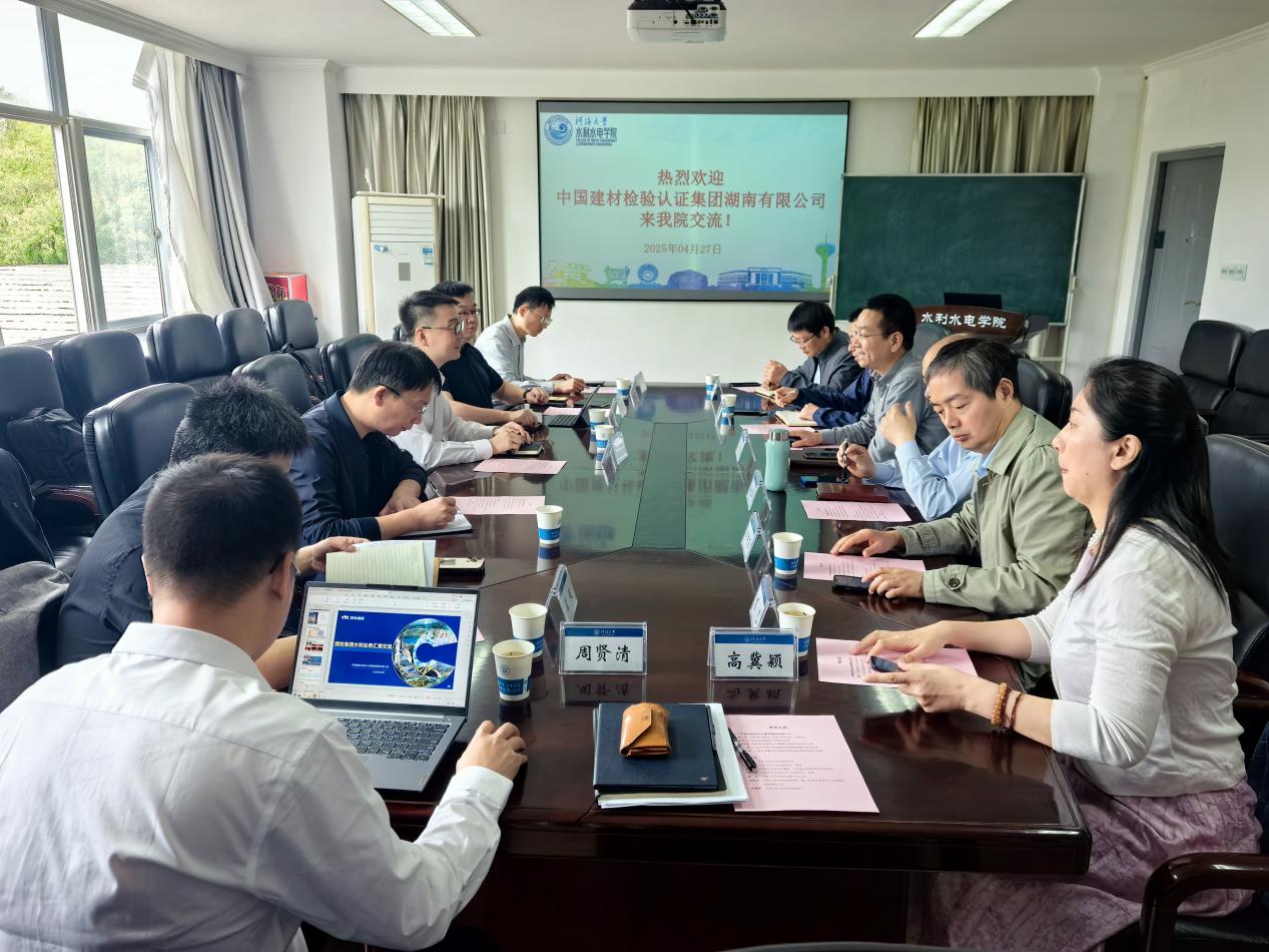 4 月 27 日,中国建材检验认证集团湖南有限公司总经理谭文杰率队来av影片 开展调研交流。av影片 党委书记娄健、副院长冉启华,商学院水利部水利经济研究所所长周申蓓及多位教师代表参会,双方围绕校企合作展开深入探讨。