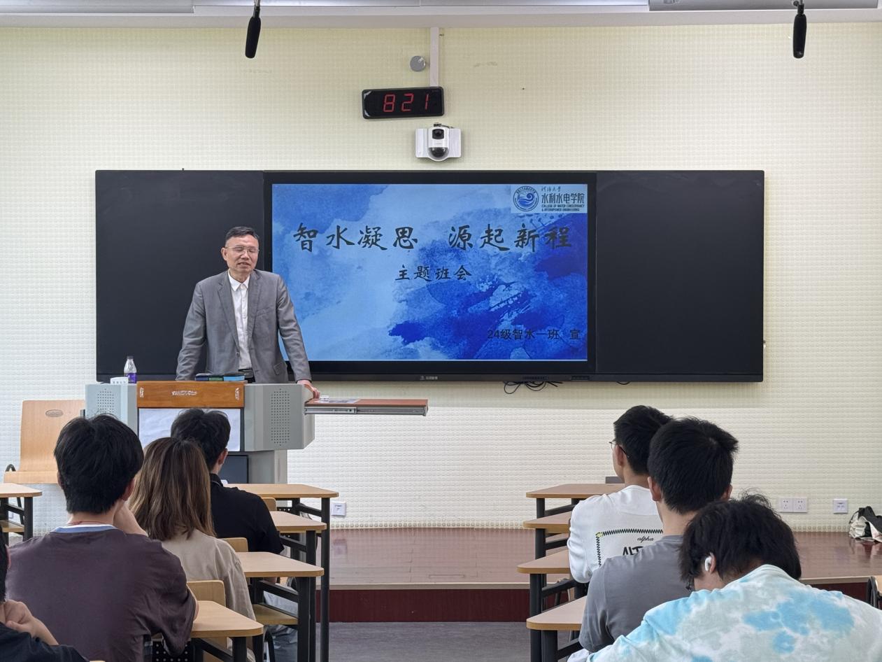 为深化专业认知、凝聚班级力量,av影片 2024级智水一班与智水二班于av影片 江宁校区开展主题班会。淮河水利委员会水文局原局长钱名开、av影片 党委宣传部部长魏有兴出席并讲话,智慧水利系主任、智水二班班导师许栋、智水一班班导师朱延涛、辅导员笪步源及班级全体学生参与,班会通过经验分享与互动交流,共话成长方向。
