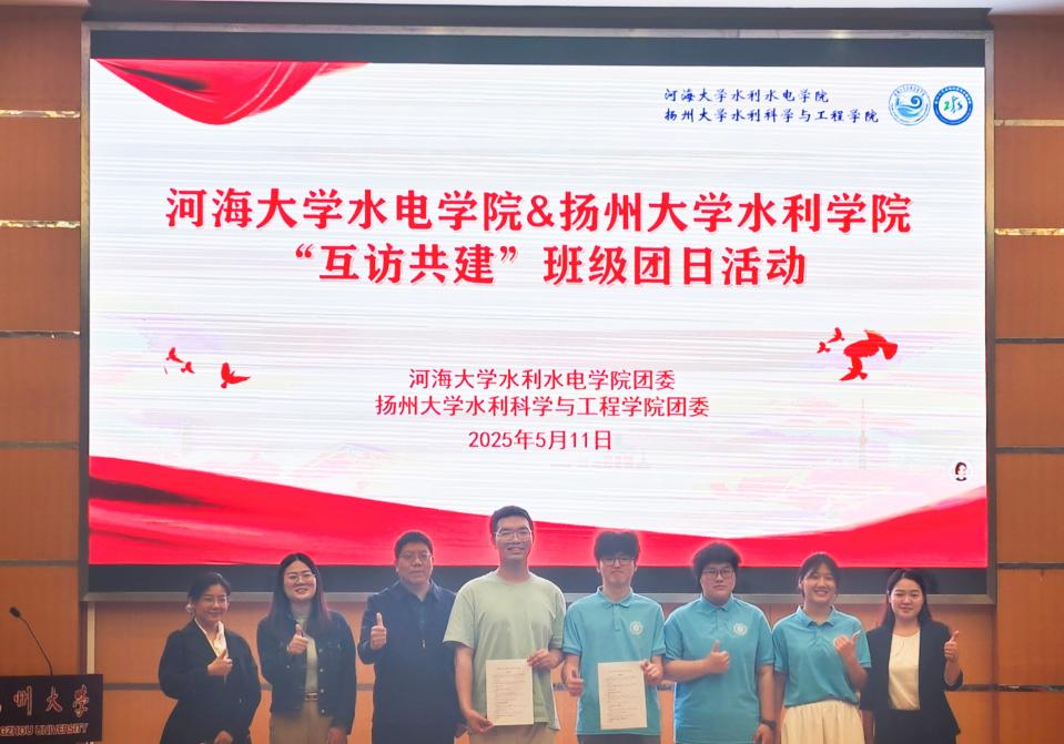 2025年5月11日,av影片 2024级本科生赴扬州大学水利科学与工程学院,开展水利新生联学主题活动。扬州大学水利科学与工程学院党委副书记张俊桂、团委书记吴媚、2024级辅导员杨蝉溪、av影片 团委书记兼2024级辅导员笪步源出席活动,av影片 2024级水利水电工程3班、智慧水利1班、安全工程1班、年级学生骨干代表、扬州大学水利科学与工程学院2403班全体学生参加,双方围绕党团共建、社会实践、校园文化等开展共建交流。
