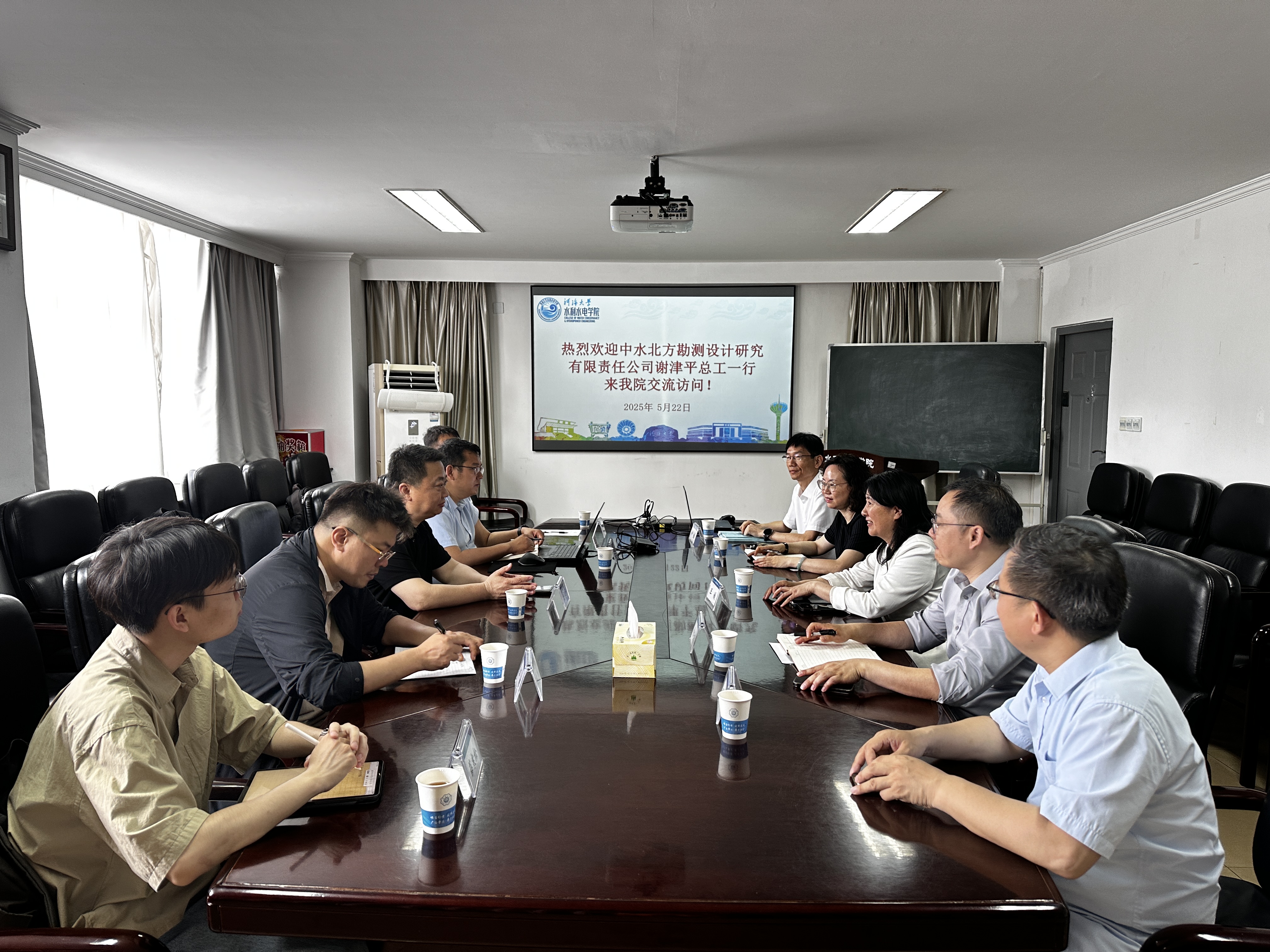 522日,为深化校企合作、共探智慧水利前沿技术发展,中水北方勘测设计研究有限责任公司(以下简称中水北方)副总工刘津平一行到访av影片 ,围绕智慧水利技术创新、产学研协同发展等主题开展专题调研。av影片 院长王媛、副院长俞晓东及学院智慧水利研究团队骨干教师赵二峰教授、高玉琴教授、许栋教授参与座谈交流。