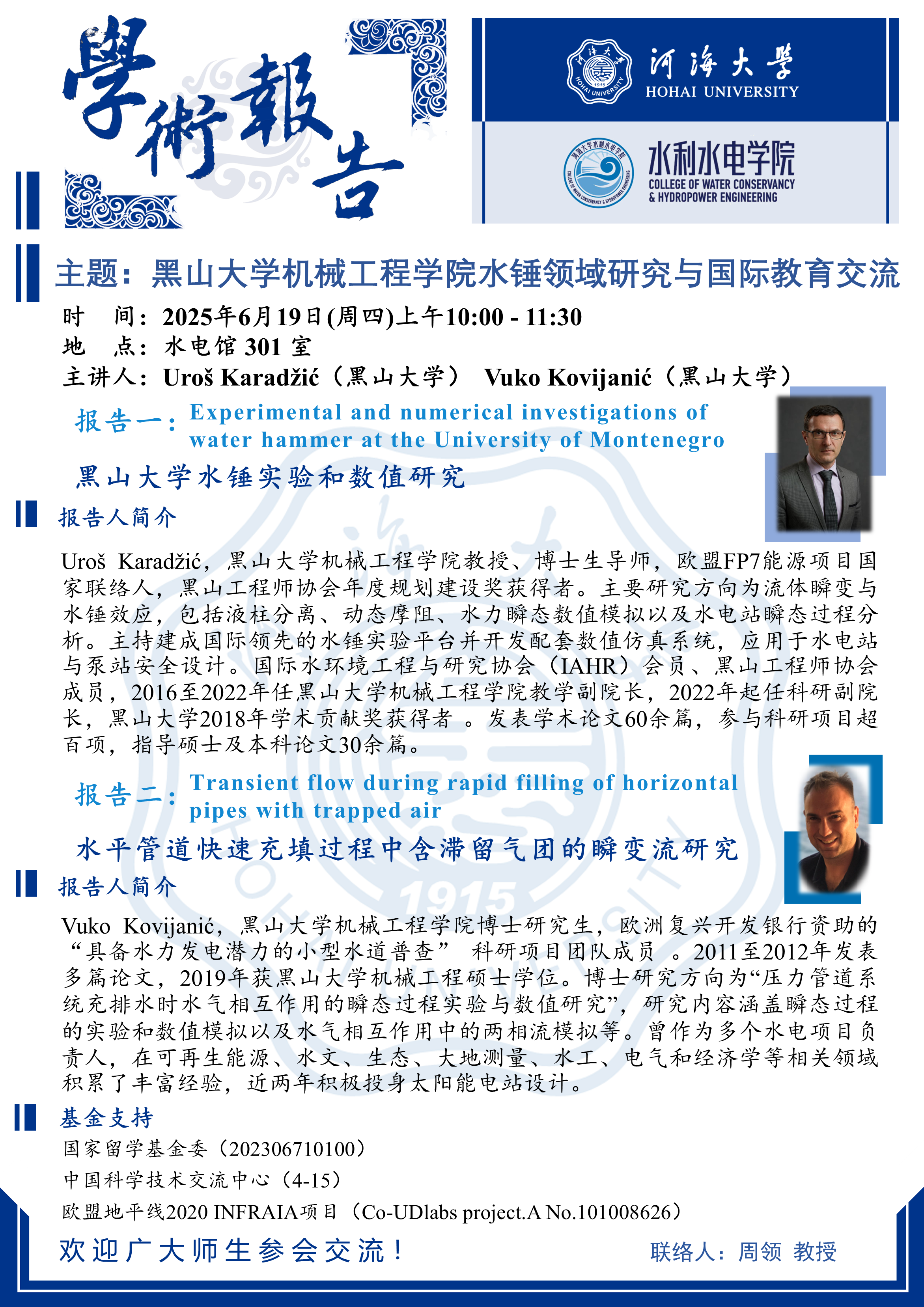 学术报告|黑山大学机械工程学院水锤领域研究与国际教育交流