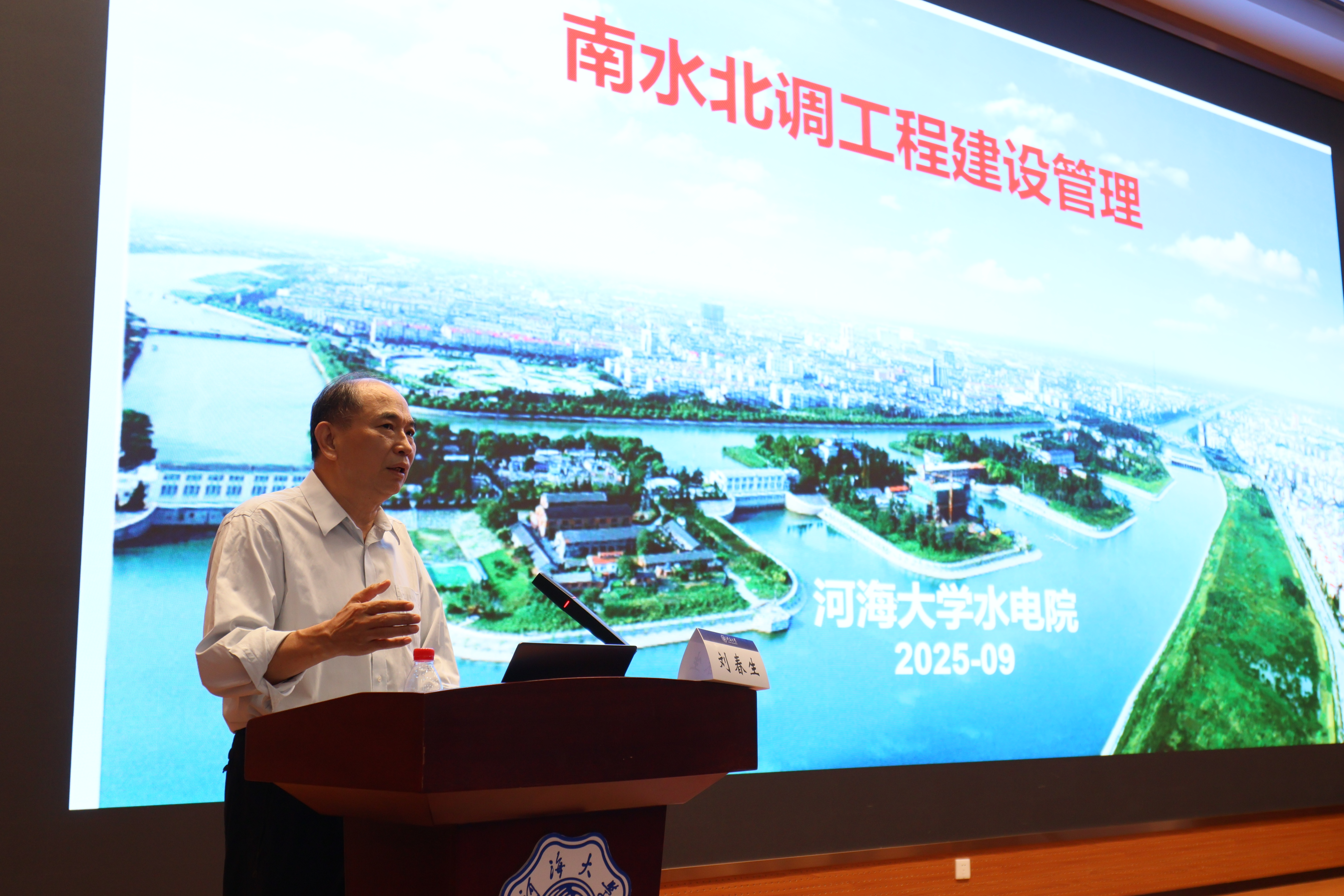 9月19日,南水北调中线干线工程建设管理局原党组书记、教授级高级工程师刘春生为av影片 2025级研究生做题为《南水北调工程建设管理》报告。学院副院长俞晓东、党委副书记戴媛媛、院长助理雷彬彬、研究生辅导员陈思思以及2025级研究生参加活动。