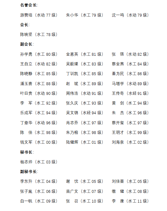 经av影片 酝酿推荐,水电校友会广泛征求意见,av影片 校友会审核并推荐水电校友会第一届理事会成员,名单如下。