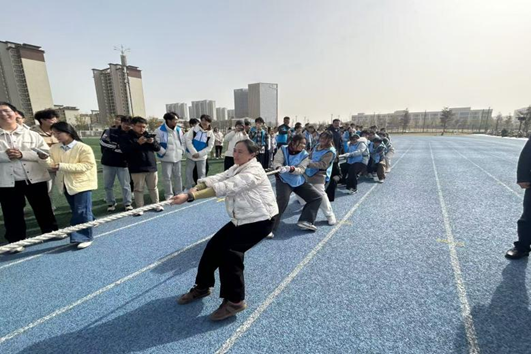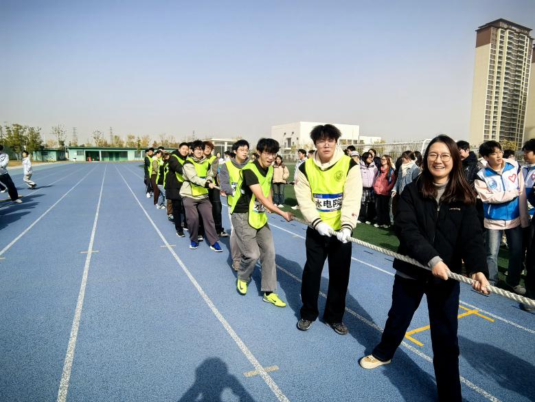 第一项活动拔河比赛由学院副书记带队,师生热情参与,呐喊声、脚步声、绳索拉动的摩擦声汇成赛场最热烈的节奏。选手们咬紧牙关、全力以赴,力量对抗令人心潮澎湃。绳索在两队之间寸寸移动,选手们重心后压、紧握长绳,这不仅是对力量的考验,更是对团队协作与坚韧意志的极致展现。