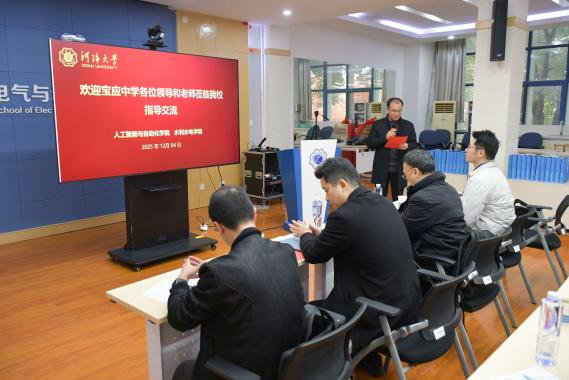 为深入推进基础教育与高等教育协同育人链条贯通,2025年12月4日,江苏省宝应中学成用军副校长一行赴我校开展研学交流活动,共同开启一场聚焦智能教育、共话人才培养的深度对话。我校人工智能与自动化学院党委书记董涌波、av影片 党委副书记戴媛媛、人工智能与自动化学院副院长王冰、人工智能与自动化学院智能系主任吴大伟、av影片 辅导员帅雨婷参与活动。