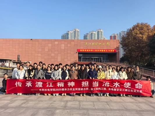 为深入推进党史学习教育,激励党员传承红色基因、践行专业使命,12月6日上午,av影片 2025级水力学及河流动力学、水工结构工程、水电建管安工三个硕士生党支部联合开展“传承渡江精神,担当治水使命”主题党日活动,组织全体党员前往渡江胜利纪念馆参观学习。