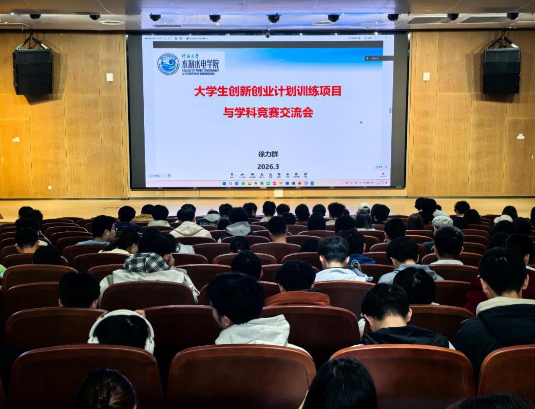 会上,徐力群老师结合大创项目的不同类型与学院近年来的立项数据,系统梳理了项目申报流程、关键时间节点和注意事项,特别强调了选题方向、导师沟通、团队协作等核心环节。重点解读了“全国大学生水利创新设计大赛”“国创赛”等学科竞赛与创训项目的内在联系,鼓励同学们将课堂所学与创新实践相结合,依托校院两级培育体系,将参赛成果转化为未来学习与科研的宝贵积累。徐老师深入浅出的分享,不仅为同学们厘清了创训项目的申报脉络,更点燃了大家投身科研创新的热情。