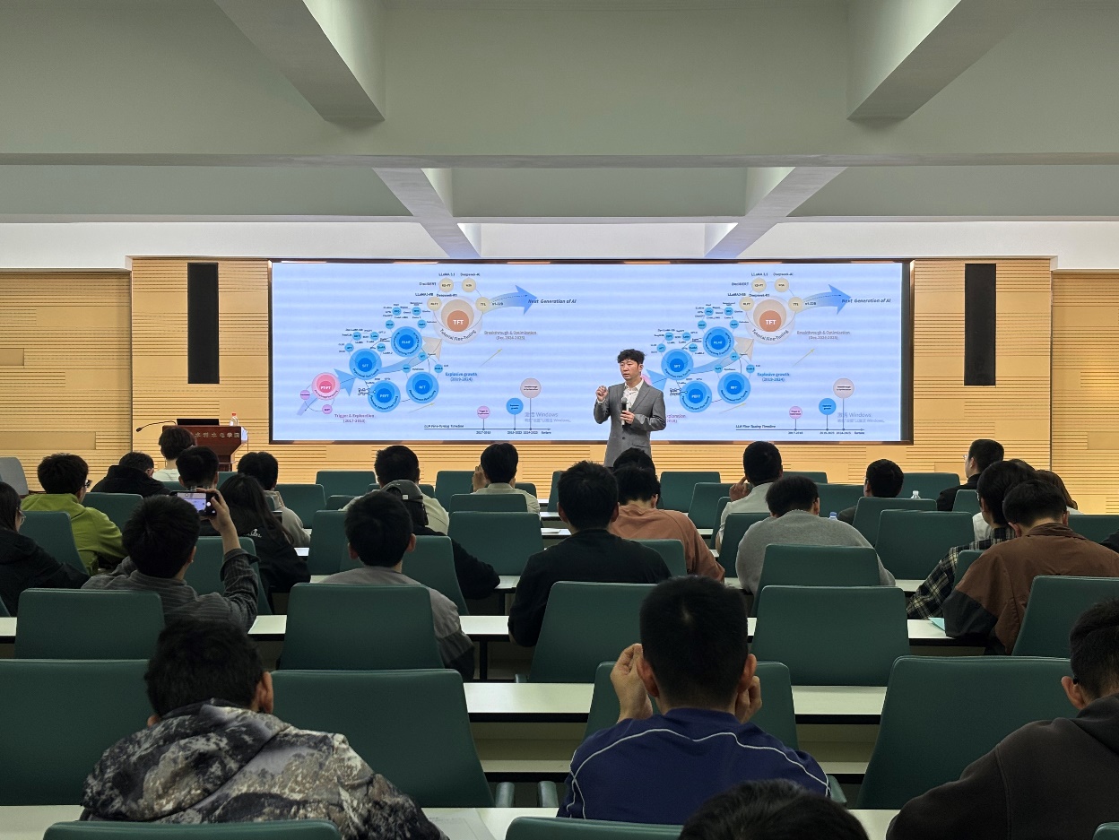 陈敏教授围绕大模型及其相应的水安全认知智能体展开了系统阐述,针对当代大模型训练数据枯竭、与人类意图适配性不强等技术瓶颈,提出了Hierarchical On-demand Cognitive Big Model with Water Utility及水安全认知智能体体系,阐述了其认知架构与内涵。他指出,现有大模型仍受限于数据瓶颈、意图对齐不足、物理一致性不足;通过将物理模型、多源数据和智能工具整合至由大模型编排的统一框架,实现面向任务的动态优化。同时,引入联邦知识引擎、多层次超时空推演及多智能体工作流,以增强模型与物理系统的一致性。报告结束后,陈敏教授与参会师生进行了热烈互动,现场学术氛围浓厚。