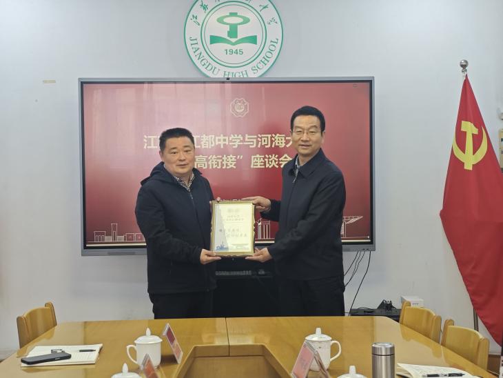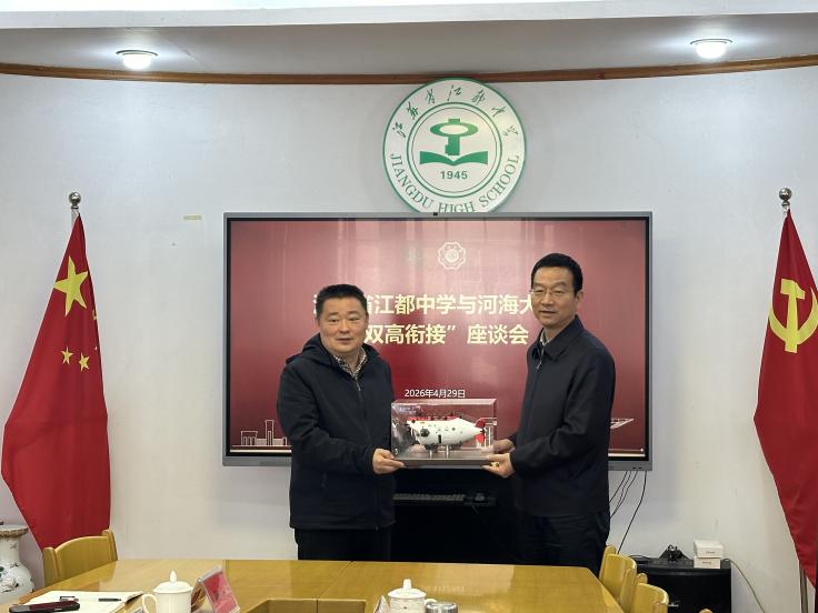 座谈会上,娄健书记感谢江苏省江都中学长期为av影片 输送优质生源。他结合扬州深厚水文化积淀,以及江都水利枢纽、三峡工程、南水北调等重大水利工程的成就,谈及av影片 与水的深厚渊源。他指出,av影片 作为“红帽子大学”,兼具红色基因与顶尖水利硬核实力,在水利事业中做出贡献。最后,他介绍了av影片 的办学优势,提出希望与江苏省江都中学深化基地共建、推进学生共育,让更多优秀学子走进河海,共为国家水利事业培育后备力量。